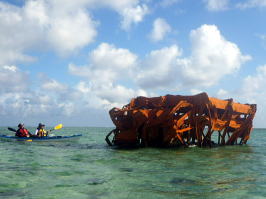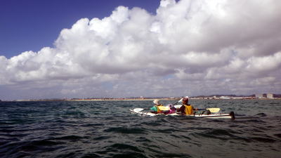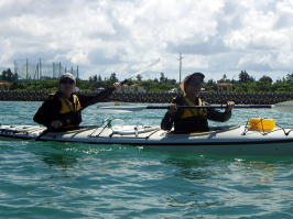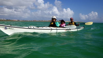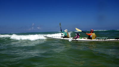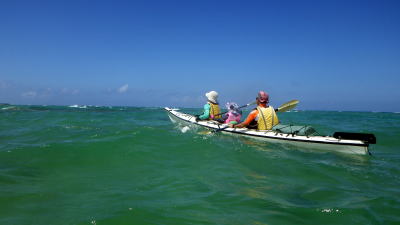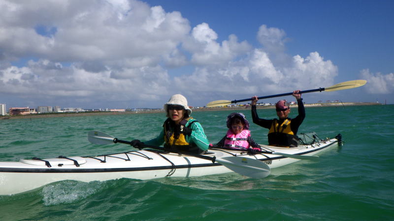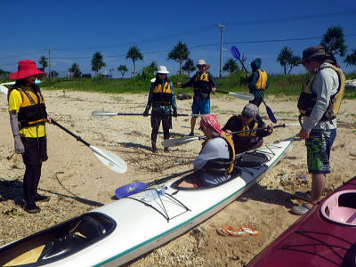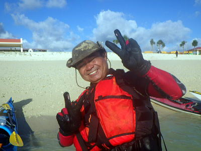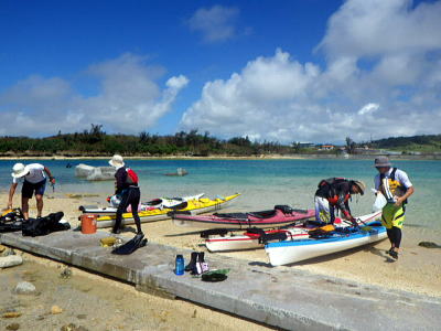 ![]() ![]() ○里さん 奥武島で出発前のパッキングに点検 タンデム1艇 シングル4艇を使用 東寄りの風、波の高さ2メートル 今回のトレーニングをそれぞれ違うシーカヤックメーカーの性能までわかるようになる。 |