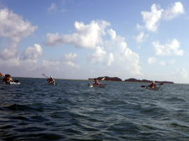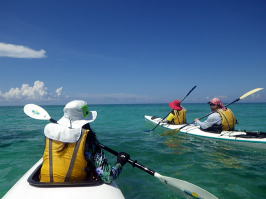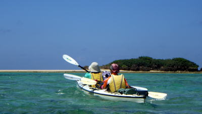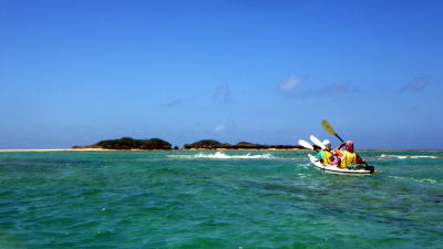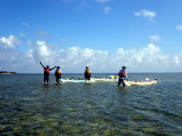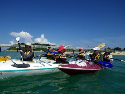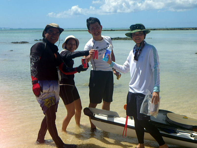 7月2日(水) 吉川グループ 瀬長島から〜岡波島往復 久々に来てくれました。 同業者の野遊び屋のゴーさんこと吉川が関西の仲間を連れて日帰りツアーに参加してくれました。 |