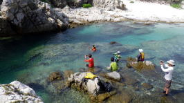 オオゼキの仲間たちが3泊4日の貸切ツアー。 天候は波も無く風もほとんど無く今年で1番の良い天気。 文章で語るより写真をみて頂ければツアーの内用がわかる事でしょう。 |