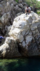 工事の進行具合からすると今年中には岸伝いは厳しいかもしれませんが まだ干潮時前後3時間前なら岸伝いに往復行けます。 |