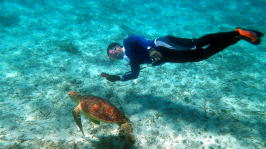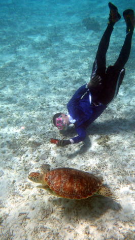 ![]() ![]() 渡嘉志久湾で必ず見れる亀 この亀が見れない方はかなり運の悪い方です。 |