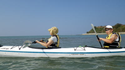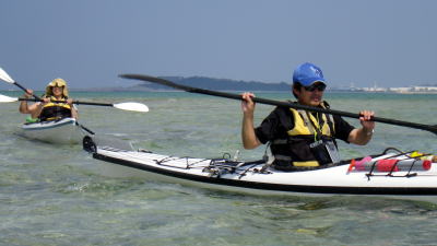 ![]() ![]() 埼玉県から参加の粕○さんご夫妻。 今日がシーカヤック初です。 |