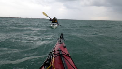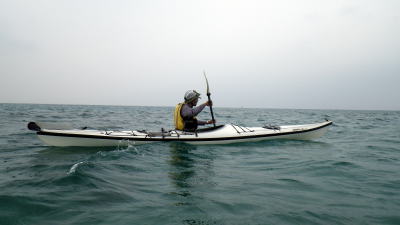 | 帰路は波は差ほどないが向かい風で必死に漕ぎました。 8kmを3時間半もかけて・・・。 これこそ 行きはよいよい帰りは恐い! まぁ、こんな事もあるさ。 |