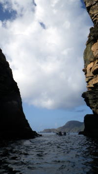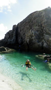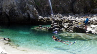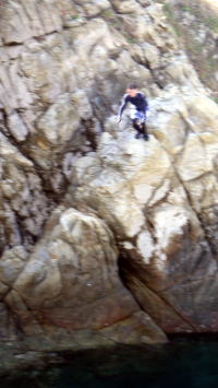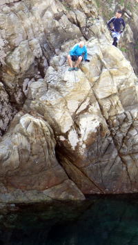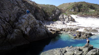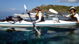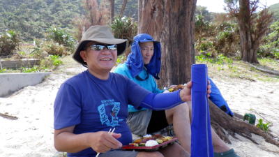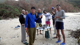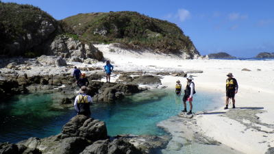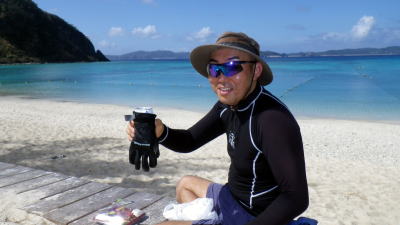 | ツアー初日目:べた凪の中 渡嘉志久湾からとある島に向かう。 |