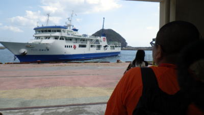 | 4日目:最悪です。 ありえない!この時期に台風20号接近! フェリーが繰上げ運行という事で昼前には出航。 |