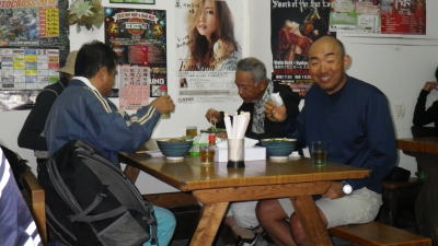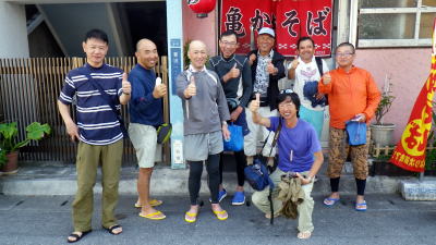 ![]() ![]() ここでツアー2日目に怪我をしたラダーチョッパー岡田と合流。 昼食は亀かめそばへ、何故かみんな「グーと親指を突き出してました」 沖縄そばを先割れスプーンで食べてました。 |