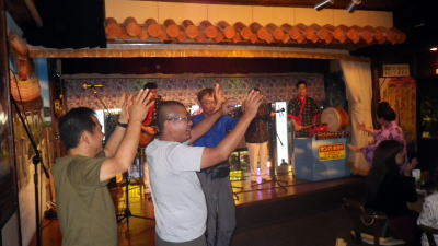 ![]() ツアー打ち上げは久茂地の“まんじゅまい”にてその後、2次会へと・・・久しぶりに民謡酒場“上原正吉芸能館 宮古根”へ |
