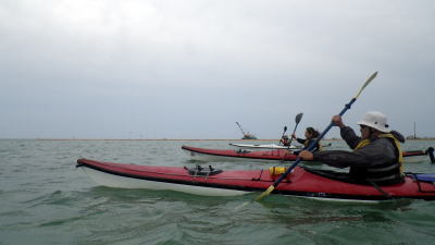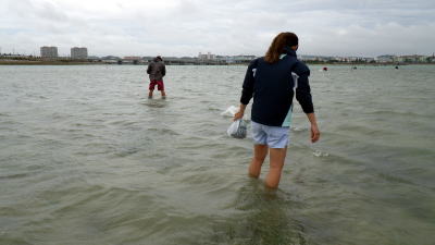 | 19日 朝から強風に雨・・・。 カヤックでの浜下りは厳しいので歩いてスーナ(おごのり)拾いへ |