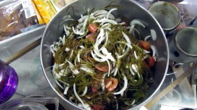 ![]() 拾ってきたスーナは海藻サラダで漕店で食べました。 |