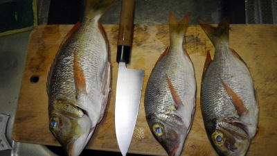 | 釣果 確かに船釣りにカヤックフィシングや延縄やルアーフィシングでは40cmオーバーは釣れてますが 磯釣りではなかなか40pオーバーは難しい。 残念ながら今回は37cmと記録更新には至らなかったが 釣れた小さいサイズはリリースも必要、良い型は各自が持ち帰り 我が家の食卓へ・・・ |