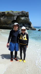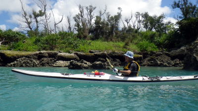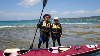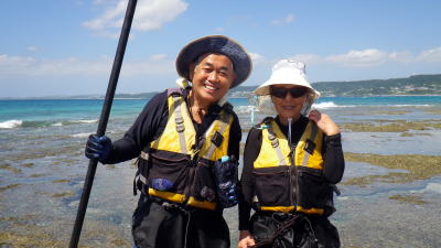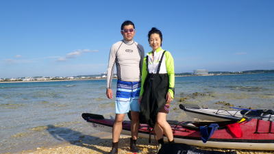 | 9月11日(金)コマカ島ツアー 沖縄に永住して十数年のご夫妻です。 この日の気象台の発表では 晴れ、北の風、波の高さ2,5メートルで波浪注意報発表 でも南城市海岸はインリーフ内で冬場や北の風の際は凪になり シーカヤックやSUPも問題なく楽しめる隠れた海岸線です。 |