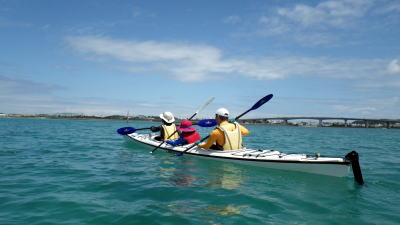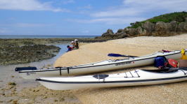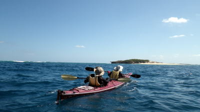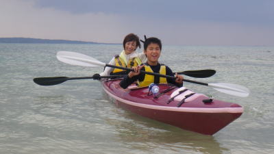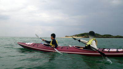 9月22日(火)午前岡波島ツアー 子供ができる前は那覇から慶良間まで漕いだこともある頼もしい父母。 息子をつれて半日ツアーに参加してくれました。 徐々にカヤックに慣れさせ何時の日か親子で慶良間まで漕げれば良いですね。 |