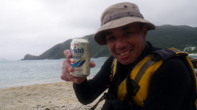 | 上陸しランチにプシュッと1杯飲んでシュノーケリングに漁と 約3時間ぐらい楽しめました。 帆漕距離37,5km |