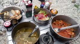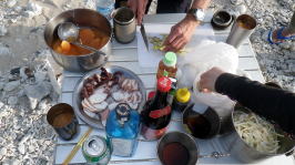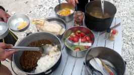 今年のGWはこれまでにない少人数のツアーです。 当初は儀志布島停滞ツアーの予定でしたが 風向きが変わる可能性があり毎日移動しながらのツアーを催行しました。 と言うより久々の移動型ツアーでかなり新鮮で やっぱりキャンプ慣れをしている リピーターだからこそ楽しめたツアー になりました。 ずーーーっと食べている写真ですが見てください。 |