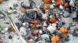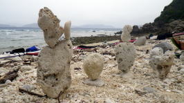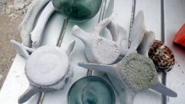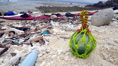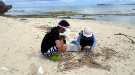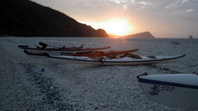 | ※砂浜はアジサシが卵を産み付けてる季節になりました。 浜辺上陸の際は気を付けましょう。 右:カヤックに詰める分だけビーチコーミング(ゴミ拾い) |