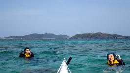 5月9日(月)瀬長島〜岡波島往復 今年初のシュノーケリングツアー 関東のカヤッカーで出張を兼ねて漕ぎに来てくれました。 |