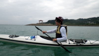 | 2月1日(水)南城市知念志喜屋〜久高島往復 横浜からの若いチャレンジャー 1月31日に予約を受けていたのですがその日は悪天候 どうしてもという事で2月1日に変更で催行 それでも久高島への漕ぎ渡るコースは風次第で微妙な状況 コマカ島あたりまで漕いで風がかなり吹いているようなら引き返す判断で漕ぎだすことで行ってみました。 左斜めの北東の風で思ったほどの風ではなく 漕げば漕ぐほど曇り空もいつの間にか久高島着いた頃は晴れになった。 |