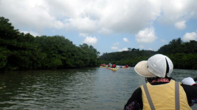 ![]() 今回の参加者 左から南〇さんに山寺姉妹。 もしかしたら来年には世界遺産になるかもしれない沖縄本島北部のヤンバルの森へ もし世界遺産になった場合は立ち入りも制限されるだろうと真っ先に行く事にしました。 ヤンバルの森を縦断している大国林道をドライブ。 (残念!運転中なので写真が撮れていない) その日は国頭村の奥の海岸でキャンプ。 2日目:ヤンバルクイナを見ようと早朝にキャンプ地を移動。 約1時間走行しついに発見! でもゲスト3名様は見逃してしまった。 (運転手の自分は常に前を見て運転しているので見れたかもしれない) これまでヤンバルクイナを見に行って見れなかった事がないのだが 今回は非常に残念。 その後、東村の慶佐次のマングローブをカヤックで見ようと。 しかし、観光地は人人人・・・・人で人酔いしそう。 |