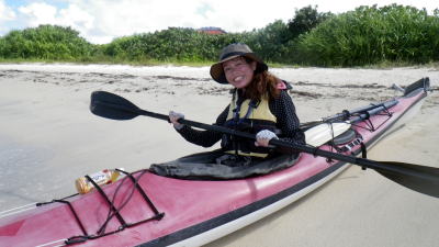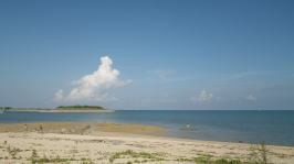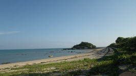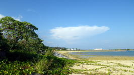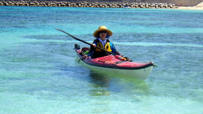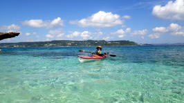 | 当初久高島でキャンプする予定でしたが漕ぎだす出発地着がPM4時で 久高島への着が日没後になりそうで 今夜のキャンプ地は南城市知念志喜屋の海岸へと変更 最終日:AM9:00久高島へ しかし暑い1時間漕いではクールダウン |