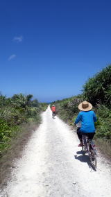 | 久高島へ着後シュノーケリングしその後昼食。 時間ぎりぎりまで島を周ろうと 久しぶりの島内1周サイクリング 2泊3日天候良いが、しかし暑い! 何かしら楽しんでもらえるよう工夫した2泊3日のツアーでした。 あっ、見れなかったヤンバルクイナは次回リベンジでご案内します。 |