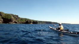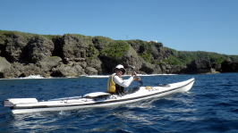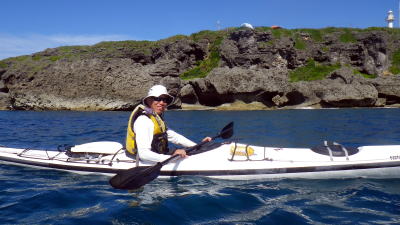 | 11月8日(水) 瀬長島〜喜屋武岬往復(26Km) 横浜から来てくれた浜〇さん。 諦めモードでしたがラッキー天候がもった。 北風ので追い風、追い波、追い潮でなんと 瀬長島〜喜屋武まで約10Kmを1時間で漕ぎ切り 1時間10分頃には喜屋武岬灯台下へ |