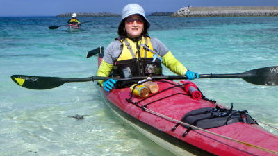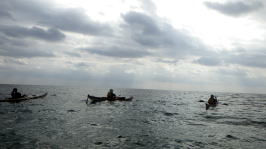 | 2019年1月14日(月) 南城市知念志喜屋〜久高島往復 初参加のNご夫妻と日帰りツアー2日連続参加の木村さんとで久高島へ さすがパドル持参のNご夫妻 向かい風の中 難なく久高島到着し 帰路はダンウンウンドであっという間に ツアーを終えました。 |